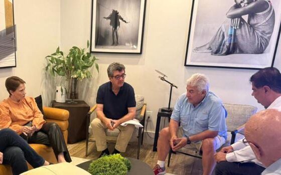 Cinco dos oito senadores que integram a missão oficial do Senado brasileiro para discutir as tarifas de 50% impostas pelos…