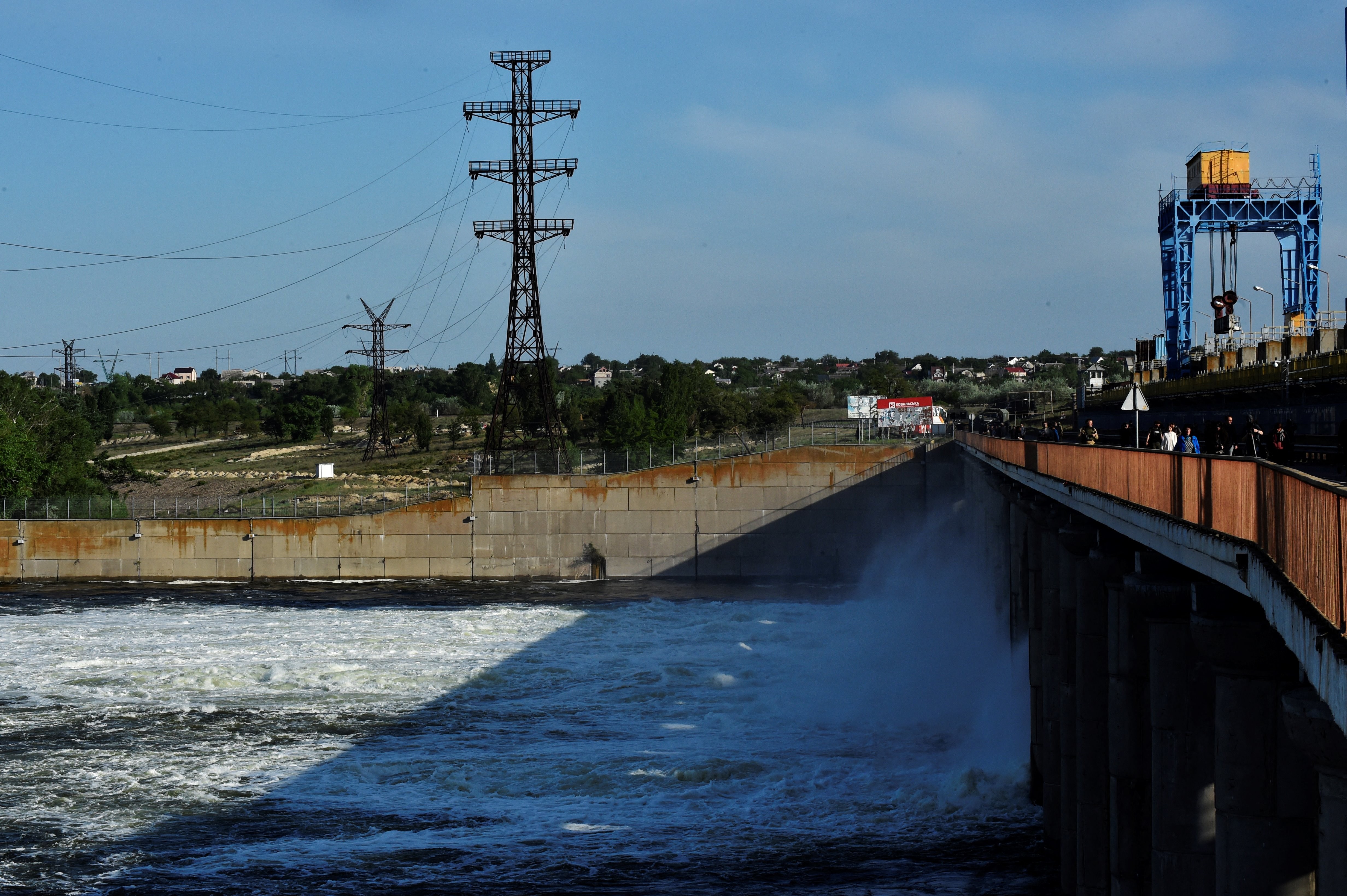 Instalada no rio Dnieper em 1956, durante o período soviético, a estrutura é, em parte, construída de concreto e terra. É uma das maiores infraestruturas deste tipo na Ucrânia.