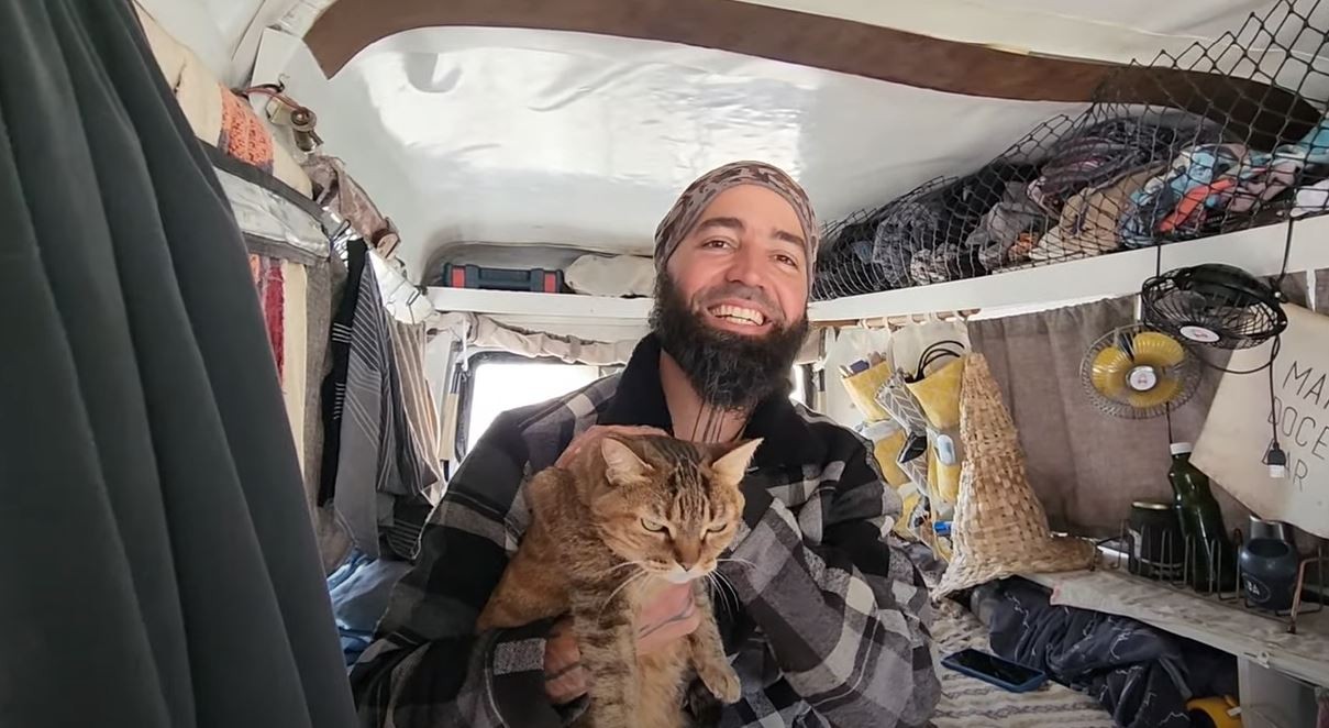 Dennis Cosmo Marin viajava de Kombi com sua gata de estimação