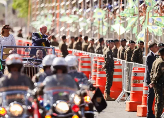 Lula e ministros acompanham desfile; público entoa “sem anistia”