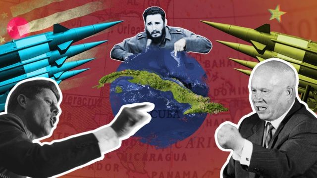Há 60 anos o mundo esteve muito próximo de um apocalipse nuclear por causa das rivalidades entre Washington e Moscou. Relembre os principais momentos da crise. Montagem feita pela BBC mostra líderes de Rússia, Estados Unidos e Cuba