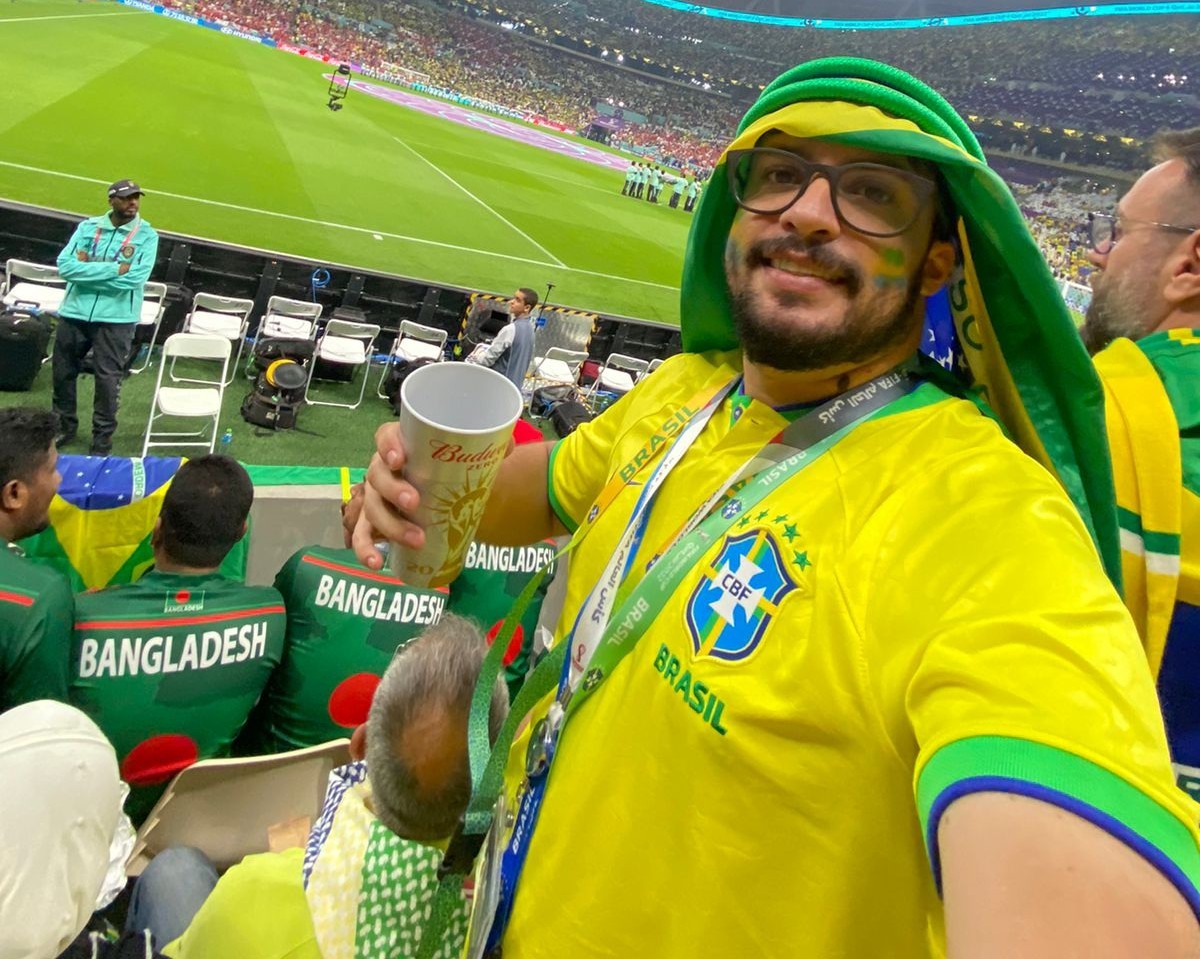 Gustavo Ferreira, de São João Nepomuceno, conta detalhes do clima nas arquibancadas do Catar e explica planejamento para estar no Mundial. Torcedor se misturou aos demais torcedores do Brasil no Catar