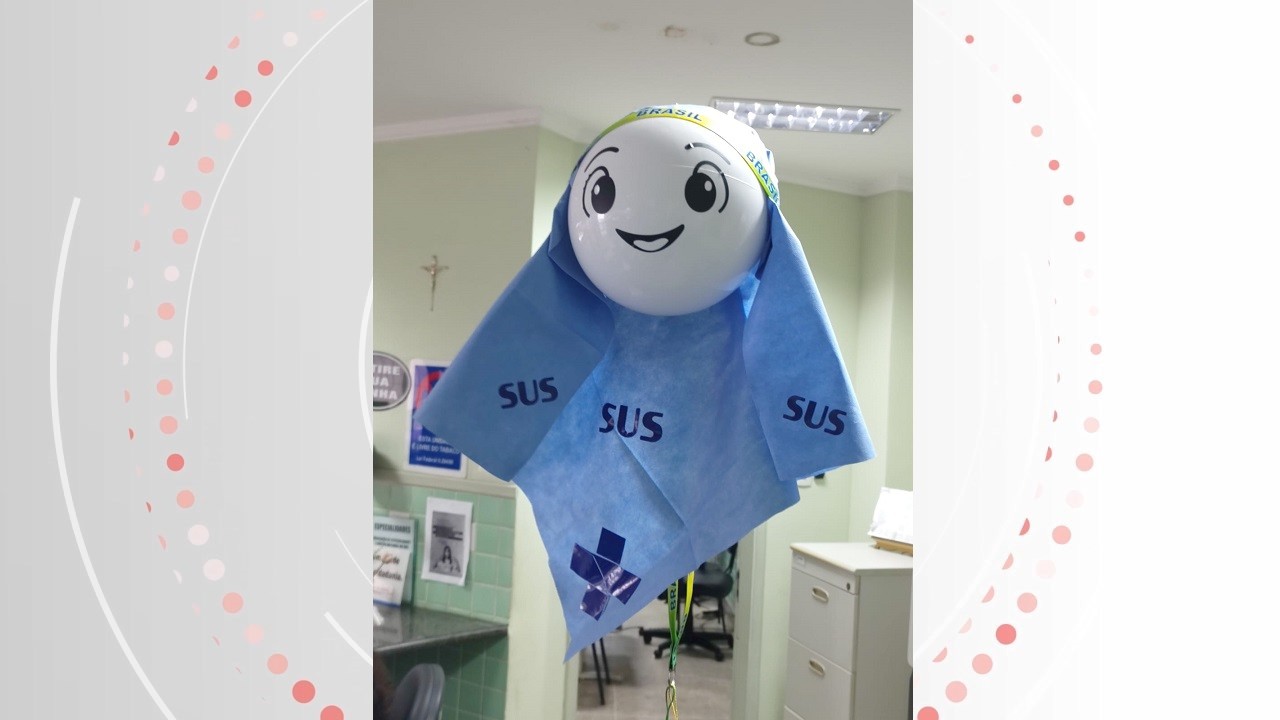 Funcionária resolveu enfeitar a unidade e se inspirou em La’eeb, mascote da Copa do Catar. Unidade de saúde do ES cria mascote do SUS: La’SUS